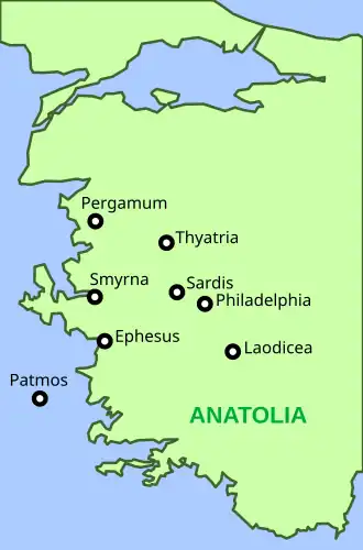 John writes, “I was in the Spirit on the Lord’s Day, and I heard behind me a loud voice, as of a trumpet, saying, ‘I am the alpha and the omega, the first and the last,’ and ‘What you see, write in a book and send it to the seven churches which are in Asia: to Ephesus, to Smyrna, to Pergamos, to Thyatira, to Sardis, to Philadelphia, and to Laodicea.’” (1:10-11). These churches were in the Roman province of "Asia", an area which is in western Turkey today. Chapters 2 and 3 consist of messages addressed specifically to these seven churches. Jesus says, “I know your works!” reminding them that he knows what is happening in his churches. He outlines the strengths and weaknesses of each church, warning them to steadfastly hold on to the faith which they have received. He promises great rewards to those who resist temptation, saying, “Because you have kept my command to persevere, I also will keep you from the hour of trial which shall come upon all the world” (3:10). He adds, “To him who overcomes, I will give to eat of the tree of life, which is in the midst of the paradise of God” (2:7).
