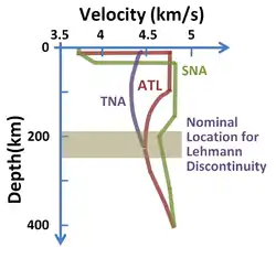 "Reconstruction of seismic reflections in the deep interior indicate some major discontinuities in seismic velocities that demarcate the major zones of the Earth: inner core, outer core, mantle, lithosphere and crust."[2]