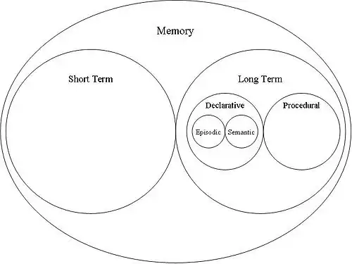 • Declarative memory consists of conscious recall of specific items. It can further be subdivided into semantic memory, which is the ability to recall facts (ex. George Washington was the first U.S. President) and episodic memory, which is the ability to recall specific experiences or events (ex. last summer I visited Mount Vernon and learned a lot about George Washington). Episodic memories dealing exclusively with oneself is also called autobiographical memory. Declarative memories of all types are usually stored in the cerebrum.