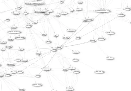 As a result of the query, we get a graph with 787 edges on 2017 and 912 edges on 2020, where the edge is a neighborhood between the two countries. The graph represents several connected components, since there are island countries that do not have neighbors (for example, Mauritius, Maldives, Madagascar).