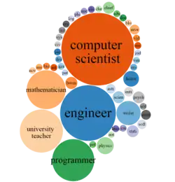 Let's construct a bubble diagram showing which professions prevail among people who develop programming languages.