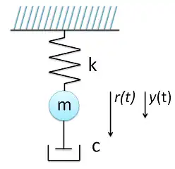 For this problem, the task was to derive the equation of motion of the spring-mass-dashpot in Fig. 53, in K 2011 p.85 with an applied force r(t).