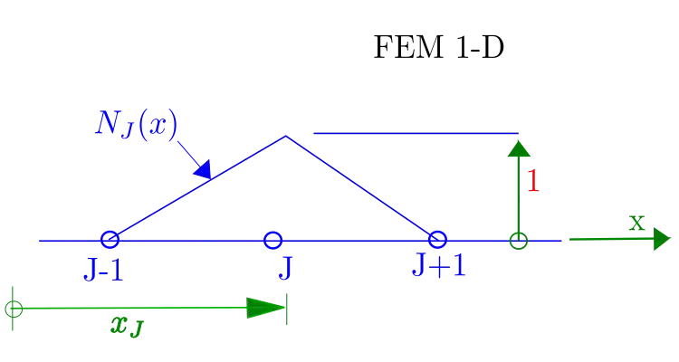 finite element basis function associated with node J = "hat" function.