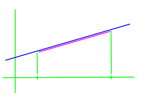 ⇒ f n L ( t ) ⏟ ∑ i = 0 n l i , n ( t ) f ( x i ) ⏟ x i = t ⇒ ∫ a b ( ∑ i = 0 n l i , n ( t ) . x i ) ⏟ d t f n L ( t ) = ∫ a b t d t ⏟ ( b 2 − a 2 ) / 2 {\displaystyle \Rightarrow {\underset {\color {blue}\sum _{i=0}^{n}l_{i,n}(t){\underset {\color {red}x_{i}}{\underbrace {\color {blue}f(x_{i})} }}}{\color {blue}\underbrace {\color {black}{f}_{n}^{L}(t)} }}={\color {red}t}\ \Rightarrow \ {\color {red}\int _{a}^{b}}{\color {blue}{\underset {{f}_{n}^{L}(t)}{\underbrace {\left({\color {black}\sum _{i=0}^{n}l_{i,n}(t).}{\color {red}x_{i}}\right)} dt}}}={\color {blue}{\underset {(b^{2}-a^{2})/2}{\underbrace {{\color {red}\int _{a}^{b}t}{\color {black}dt}} }}}}