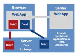 WebApp: Classical Client-Server Architecture - Browser loads WebApp from Server and exchanges data with server - (see also Same-Origin Policy)