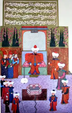 - ↑ Al-Qaramānī, Aḥmad ibn Yūsuf (1405 AH - 1985 CE). Tārīkh Salāṭīn Āl ʻUt̲mān (in Arabic) (First ed.). Damascus: Dār al-Baṣāʼir. pp. 31.