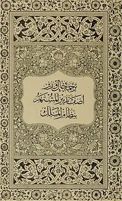 Some narrations also suggested that Orhan came to know about Siyāsatnāmeh (Persian: سیاستنامه), a book written by the Seljuk vizier Mamluks. In this book, vizier Nizam mentioned that the best way to create a fighting force of Turkic Mamluks is through raising them on the basis of Islamic ideals, and then, after this step is achieved, the Mamluks can enter into the service of the royal palaces and various government departments. Influenced by this idea, Orhan was determined to apply it in his own domain.[45]