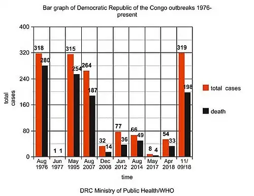 - ↑ "Ebola virus disease – Democratic Republic of the Congo. Disease Outbreak News, 14 September 2018". World Health Organization (WHO). Retrieved 19 September 2018.