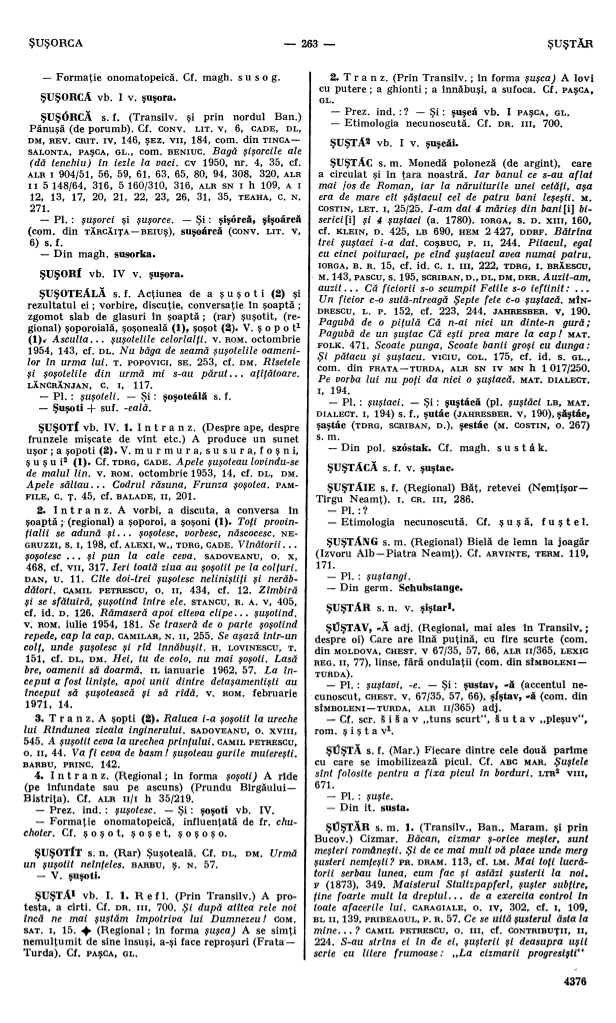 - Iorgu Iordan, Alexandru Graur, Ion Coteanu, editors (1986), Dicționarul Limbii Române[1], volume 11, part 1, Bucharest: Academy of the Socialist Republic of Romania, page 263